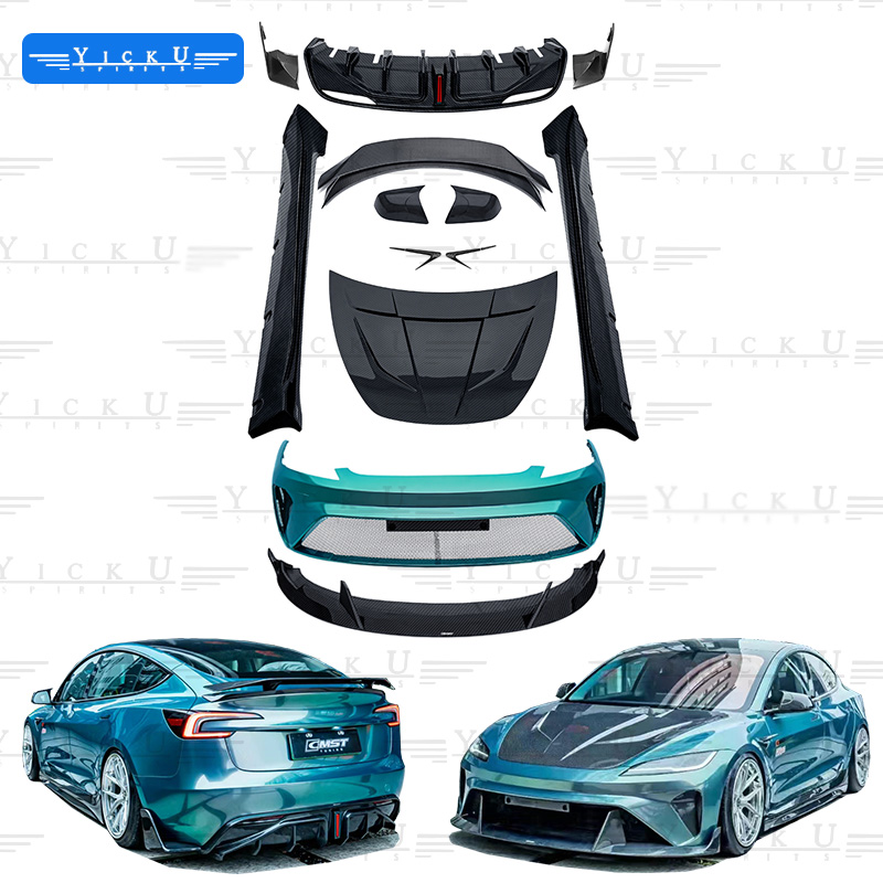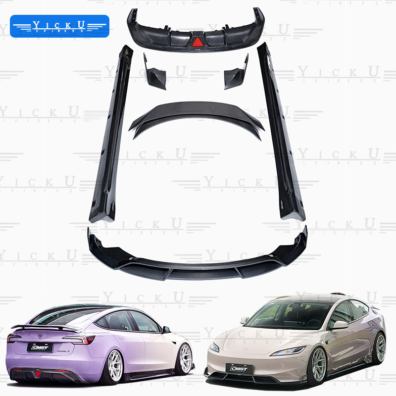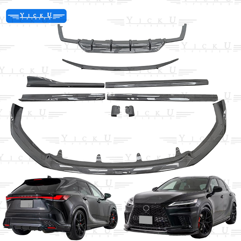 RX 하이 퀄리티 탄소 섬유 바디 키트용 New YICKU 23 프론트 립 리어 디퓨저 휠 아이브로우 사이드 스커트 볼트온 유니버셜