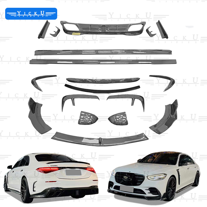 YICKU 건조 탄소 섬유 바디 키트 메르세데스-벤츠 S-CLASS W223 마이바흐 S480 580 680 업그레이드 MSY 스타일 프론트 립 탑 윙 스포일러